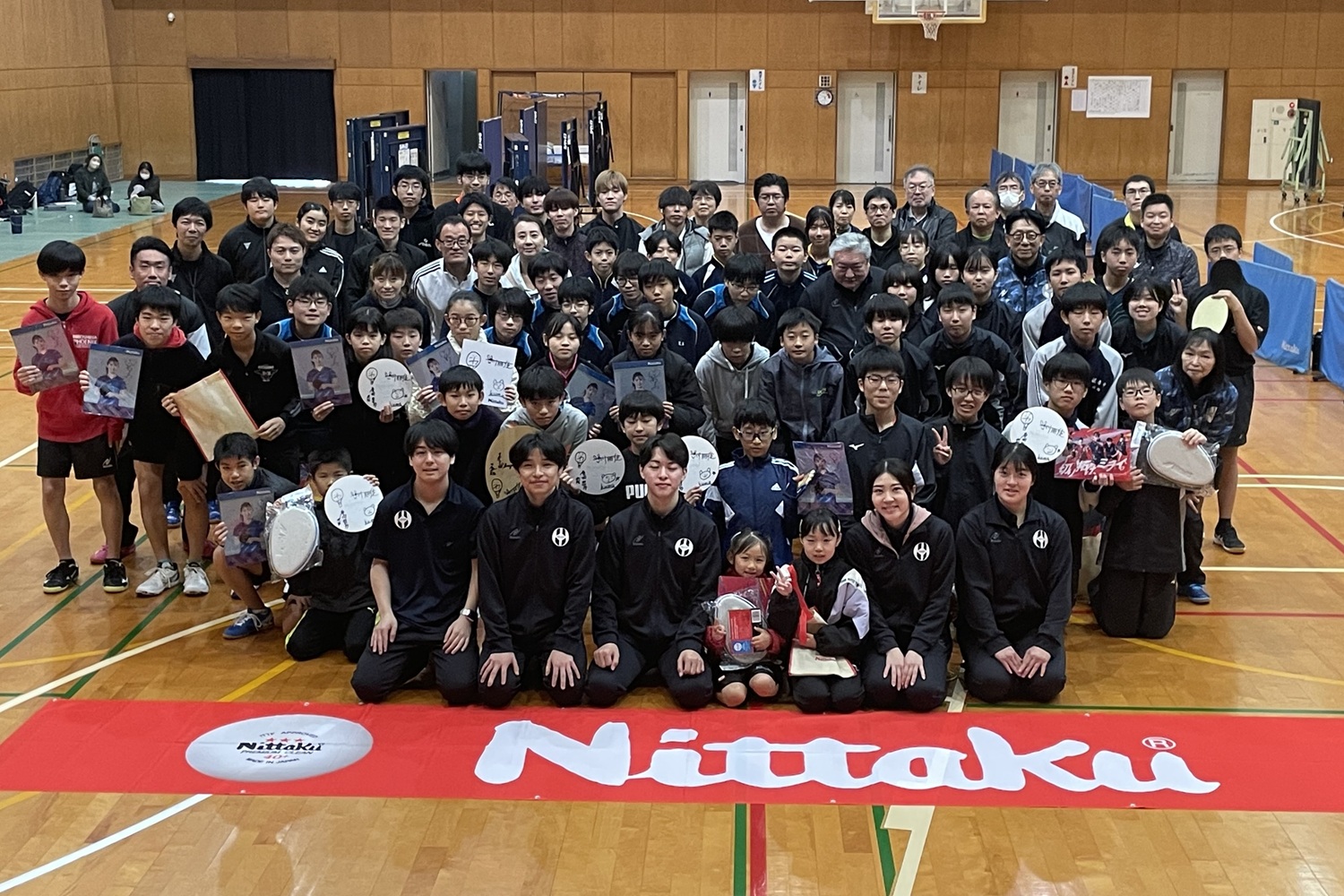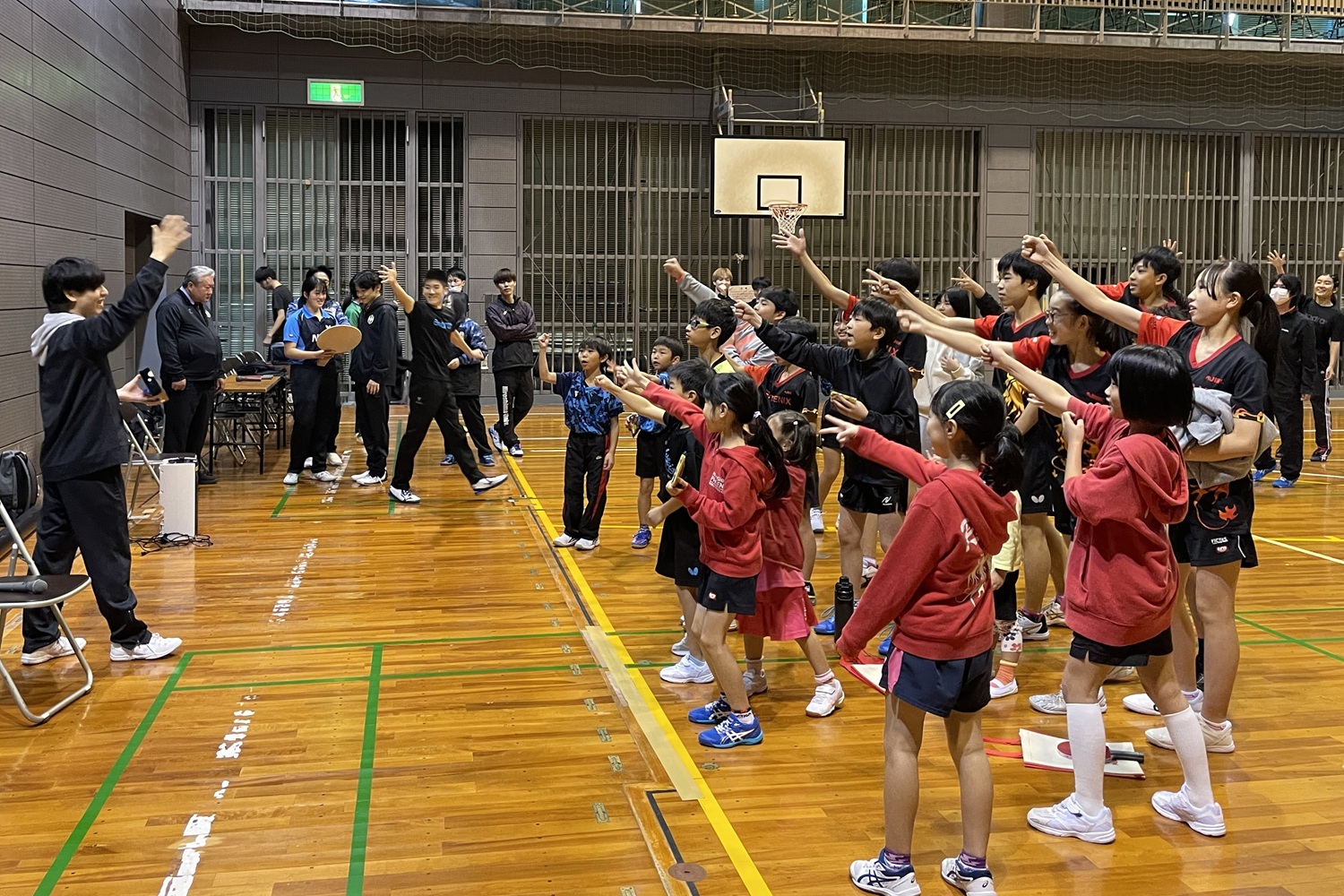 (一社)日本学生卓球連盟復興支援卓球講習交流会が、11月15~16日に広島県の大和興産安佐北区スポーツセンターと広島市立大塚中学校で開催された。