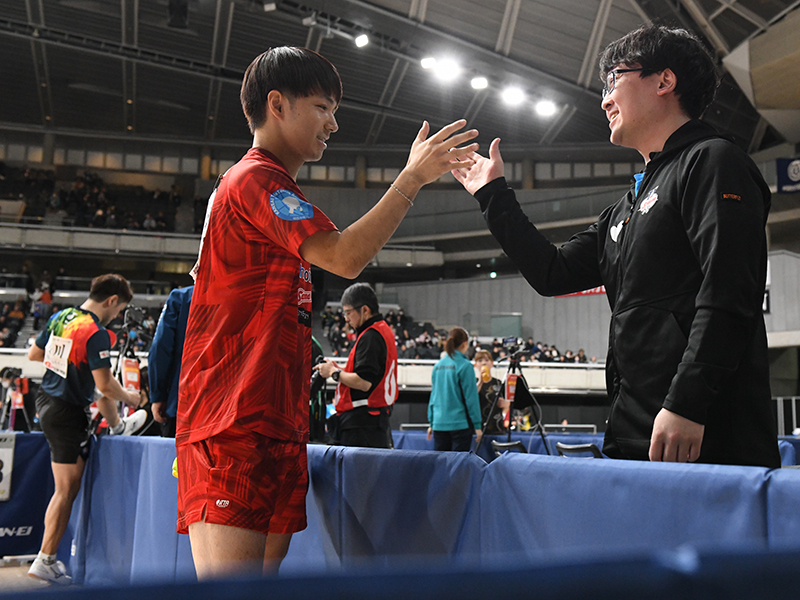 4回戦の相手は岡野(朝日大)で、直近のTリーグでの対戦では勝っているけれど、その前の2試合はどちらも0-3で負けている。ここも勝負だと思いますけど、上を見ずに1試合1試合、やるべきことをやりたい。緊張したら何もできなくなるし、体も固まってしまう。『勝ち負けは関係ない』という気持ちで今年は挑めています」(木造)