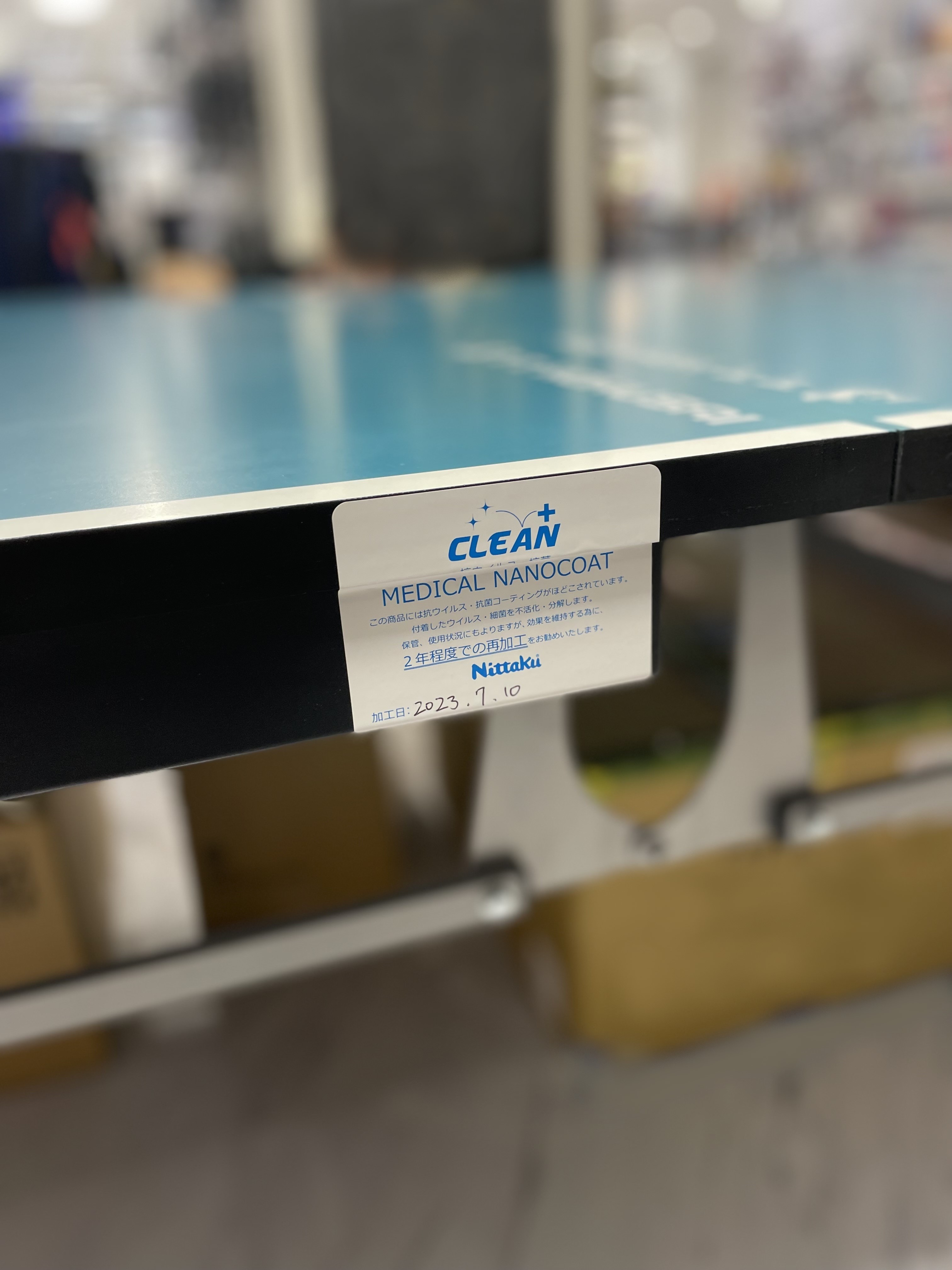 ※卓球台は抗ウイルス抗菌加工(ニッタク社で加工)をしていますので、安心してお使いいただくことができます。