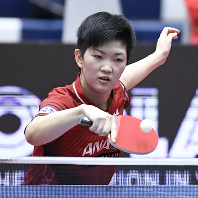 木原はゲームカウント2−0から悔しい逆転負け。国内大会では一発で決まる木原の両ハンド強打を、蒯曼は正確に返球。要所で木原のフォアサイドにループドライブを送り、ミスを誘ってきた。