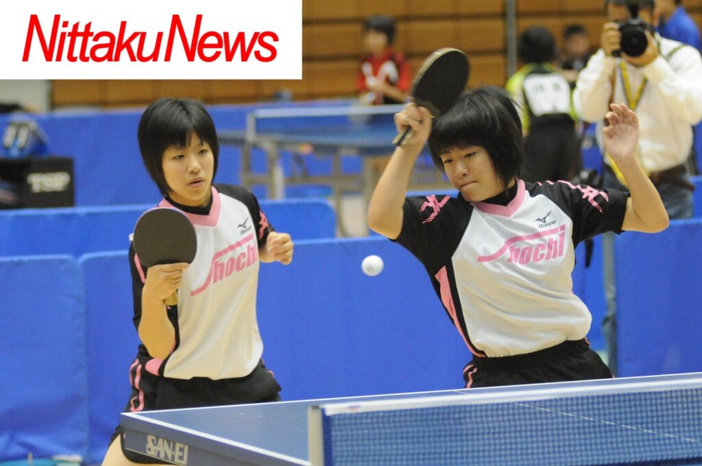 平真由香・川北美礼(Shochi Jr)と石田葵・平塚叶梨(ミキハウスJSC)が決勝で対戦。平・川北が0-2の7-9の劣勢から最後まで攻め続け、逆転優勝した。「正直負けると思いましたが、パートナーを信じて粘りました」と平。平は14歳以下シングルスと合わせて2冠を達成。敗れた石田・平塚は変化の分かりづらいサービスから攻撃につなげた。