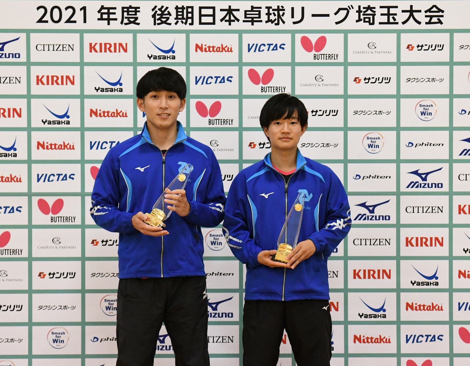 ▲優秀ペア賞 馬渡元樹(左)・増本時祥(朝日大)
