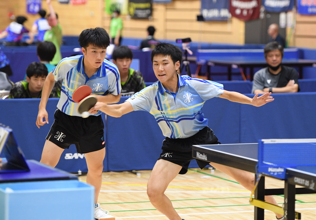 ▲鶴岡東、阿部鴻憲(左)とペアを組んだ梅木大智(右)は、単・複で2点をあげた