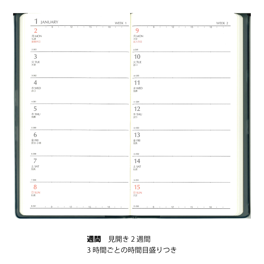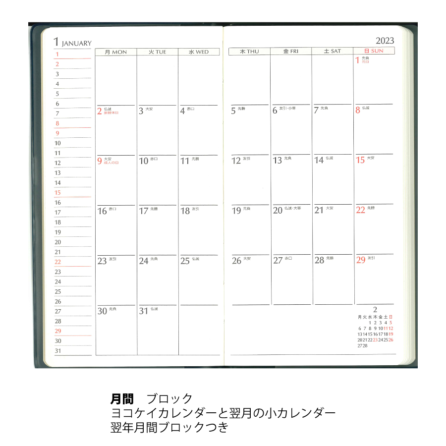 【月間ページ】見開き1ヶ月のベーシックなブロックタイプ(月曜始まり)
