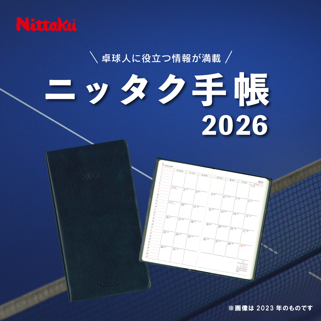 主要大会優勝者一覧や主要大会のスケジュールが書き込める、卓球人にピッタリのニッタク手帳2026年版を数量限定で販売します。