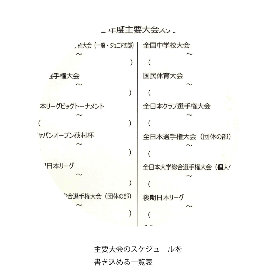 主要大会優勝者一覧、主要大会スケジュール一覧(記入可)