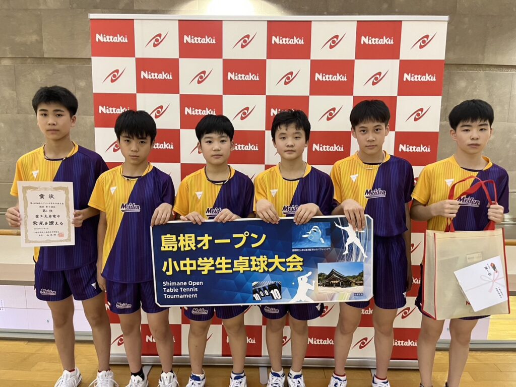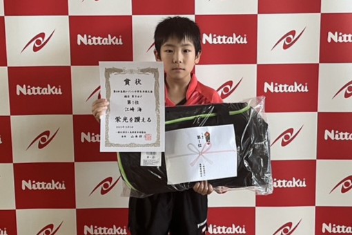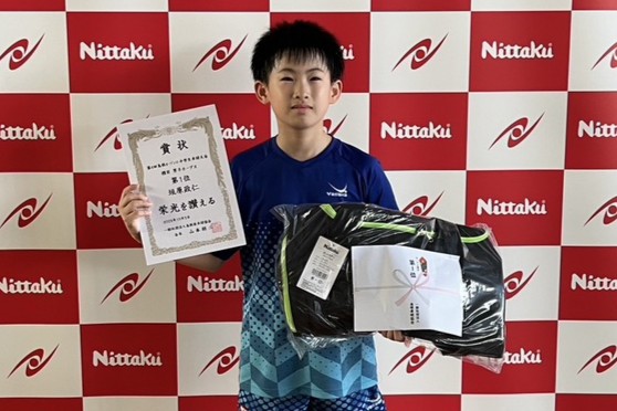 招待チームとして愛工大名電中学校・ミキハウスJSC・明誠U15・SHIPスポーツ(明誠U15男子)・出雲北陵中学校・松徳学院中学校など、全国で活躍するチームも参加し、ハイレベルな試合が展開されたなかで、原澤駿太(愛工大名電中)が団体・単で二冠を達成した。