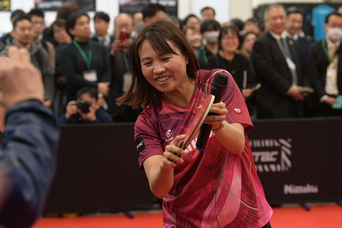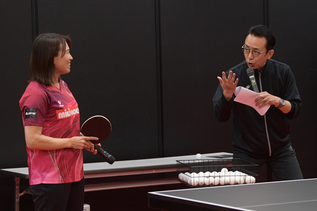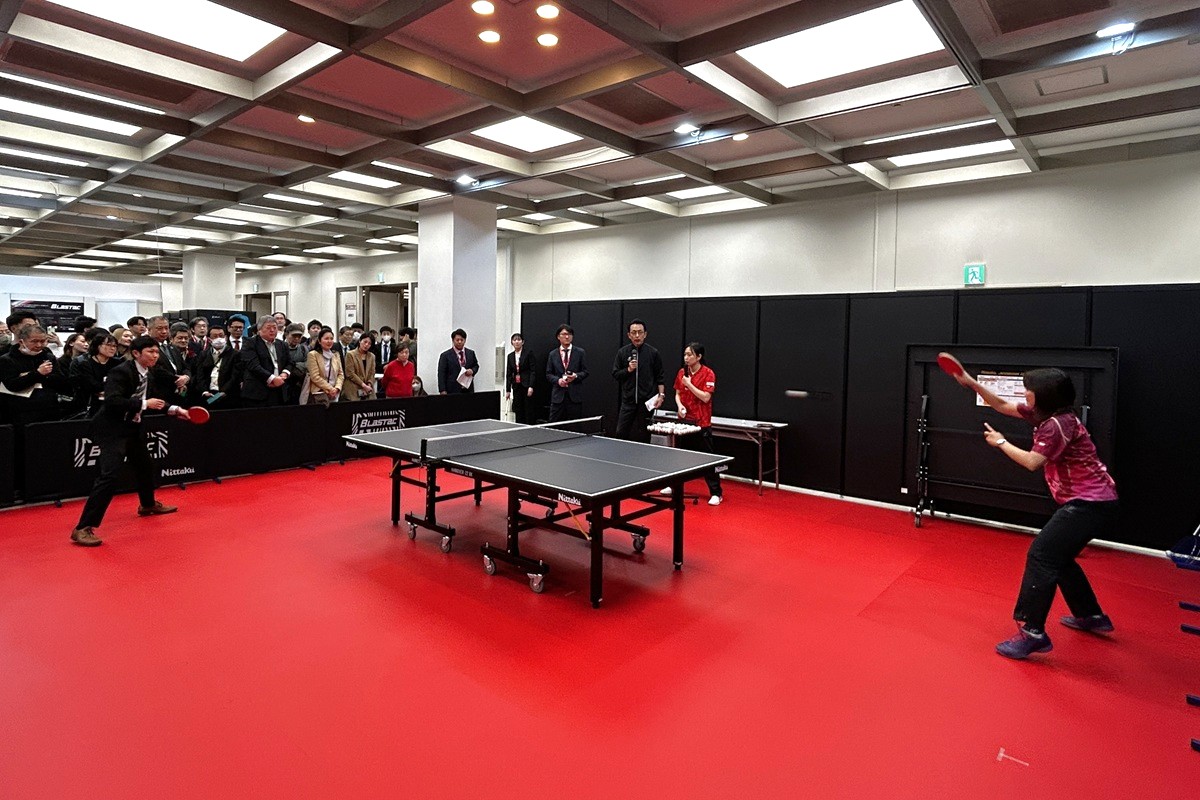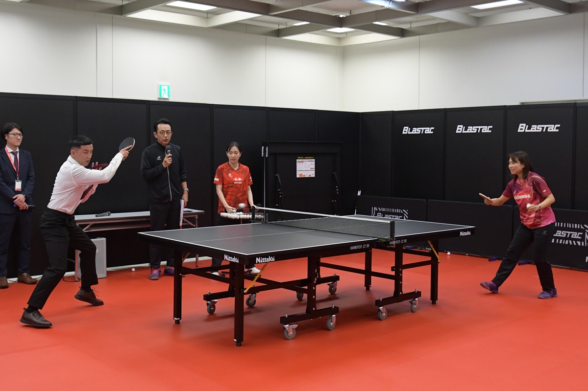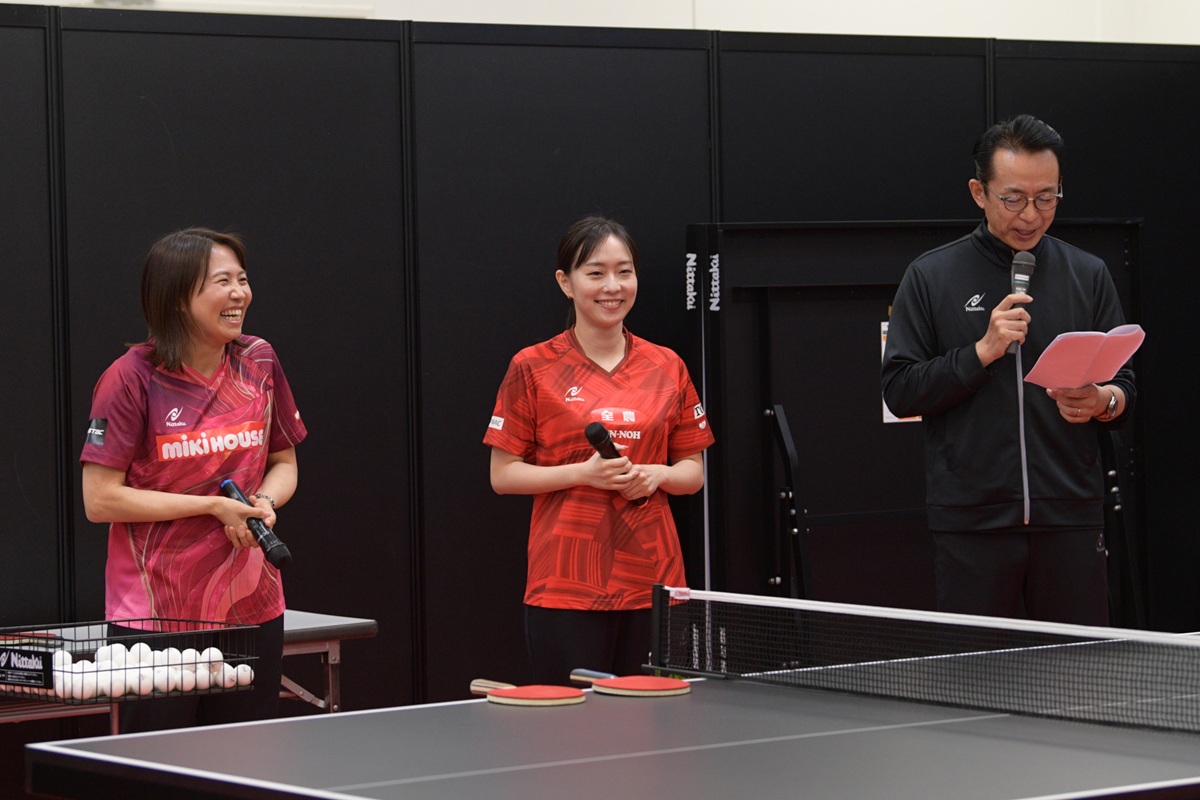 3月10~11日に開催した2026ニッタク展示会。初日には、石川佳純さん(全農)、平野早矢香さん(ミキハウス)、メインMCに福澤朗さん(熱烈卓球伝道師)と豪華メンバーをゲストに迎えてイベントを開催。最大の目玉となる新製品ラバー「ブラスタック」をテーマに、軽快なトークと華麗なプレーを披露しました。