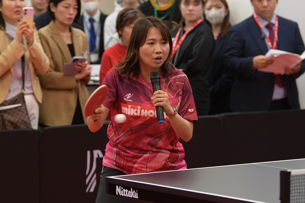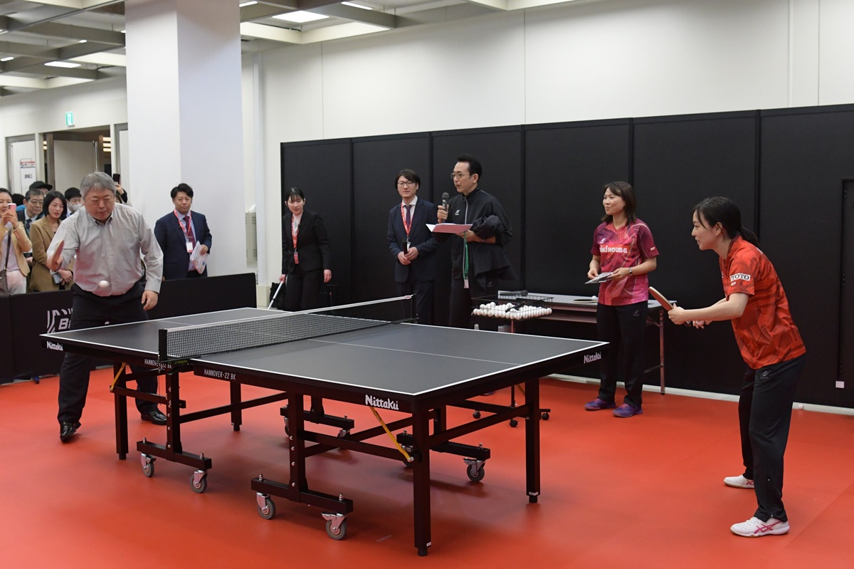 「すごく軟らかいけど自分の力も伝わっている感じがしました。男子なので引き合いの展開も多いのですが、思い切ってプレーできますね」と沼田さん(八戸卓球アカデミー/青森県)。