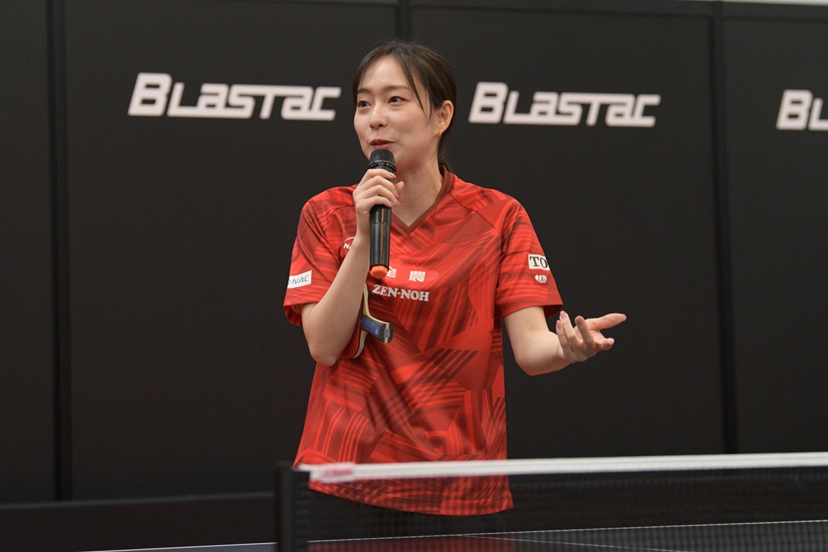 「どのレベルになっても安定性がすごく大事で、それは間違いないと思っています。ブラスタックはコントロールがすごくしやすい。台上、カウンター、スマッシュ、全ての技術を試しましたが、しっかりスピードも出るし、スピンもかかると思いました。