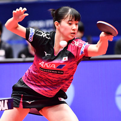 日本女子の勝利の立役者は、中学2年生の大藤沙月。トップでルーマニアのエース、ユース五輪銅メダルのドラゴマンを破った。試合後に「団体戦の初戦で、自分の試合も1番だったのですごく緊張しました」と語った大藤だが、見ている者にはそうと感じさせない冷静なプレー。2ゲーム目こそ0−7と大きくリードされて落としたが、サイドに厳しく振られても両ハンドドライブで冷静に対応し、チャンスボールは強烈なフォアドライブを打ち込んだ。「今大会は中国に勝って優勝することを目指しているので、まず決勝にいけるよう、明日良い試合ができるよう、頑張ります」(大藤)。