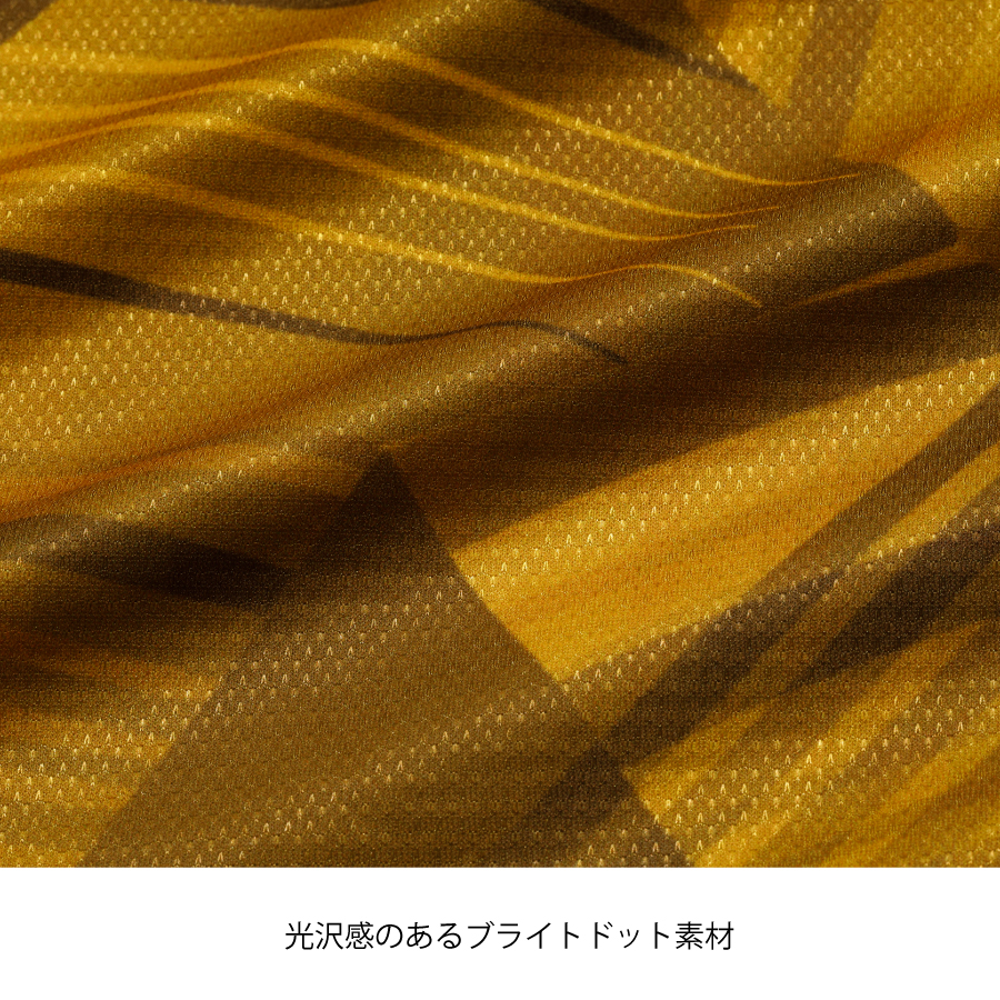 発色性がよく、光沢感のあるブライトドット素材を採用。サラっとした肌触りと伸縮性もあり、快適な着心地です。