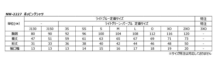 - ライトブルー:J130・J150・3S・SS・S・M・L・O・XO・2XO