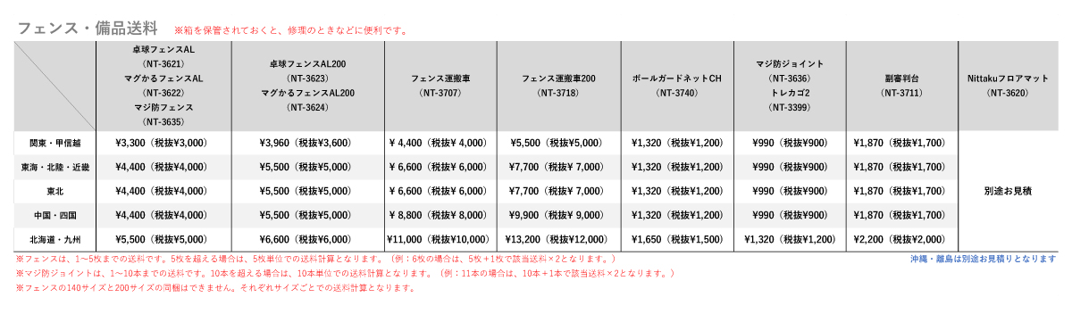 - 送料表