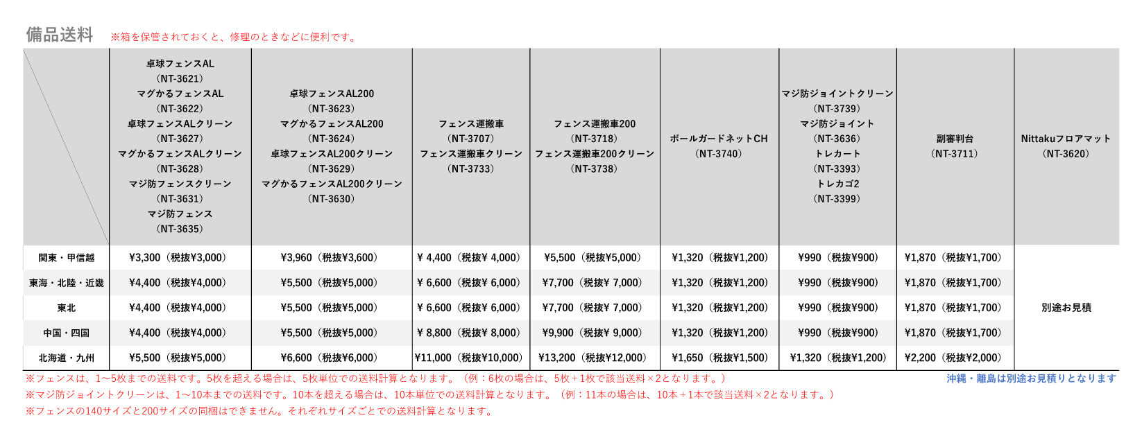 - 送料表